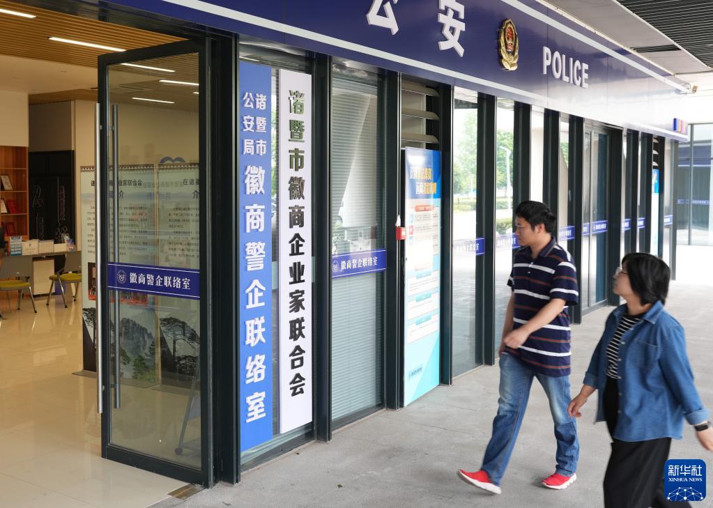 5月26日拍攝的諸暨市公安局徽商警企聯(lián)絡(luò )室。該聯(lián)絡(luò )室成立于2020年,由徽商代表組成,目前共有210名“徽商義警”,為在諸暨經(jīng)商務(wù)工的7.5萬(wàn)名同鄉提供經(jīng)濟、治安類(lèi)調解服務(wù)。