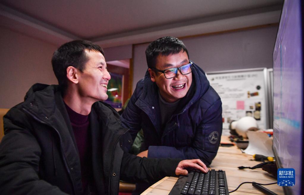 尤顯龍(左)和同事唐鵬在討論觀(guān)測到的數據(5月23日攝)。