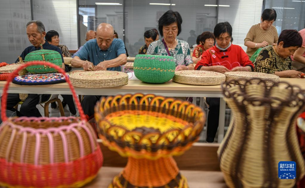 5月26日,遷居村民在孝里街道社區黨群服務(wù)中心內集中學(xué)習編織技藝。