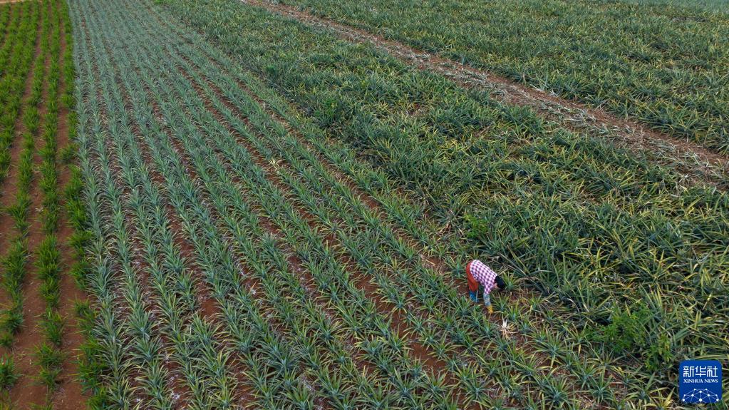 廣東省湛江市徐聞縣是菠蘿生產(chǎn)大縣,種植面積超過(guò)35萬(wàn)畝,被稱(chēng)為“菠蘿的?!?。從空中俯瞰,以菠蘿為主的多種作物農田仿佛大地調色板,這已成為雷州半島著(zhù)名的農業(yè)生態(tài)旅游景觀(guān)。