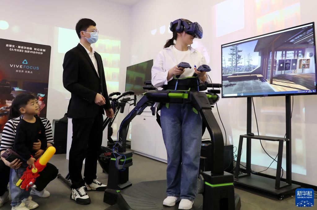 5月27日,2023中關(guān)村“教育+科技”創(chuàng )新周教育創(chuàng )新主題應用體驗展上,觀(guān)眾在體驗元宇宙教育。