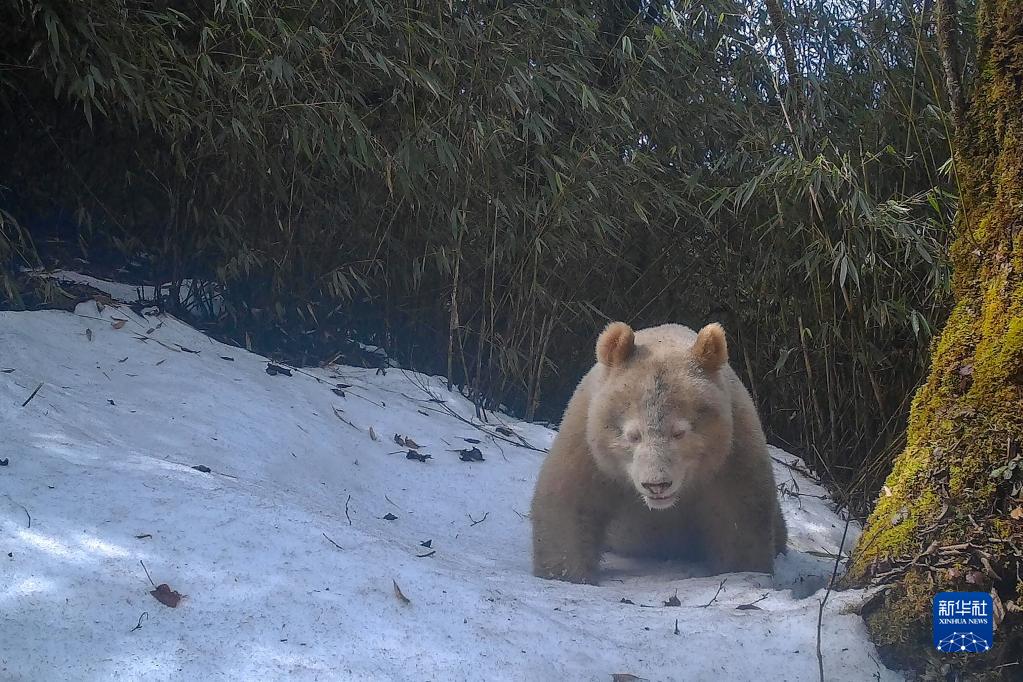 紅外相機拍攝到的白色大熊貓活動(dòng)畫(huà)面。