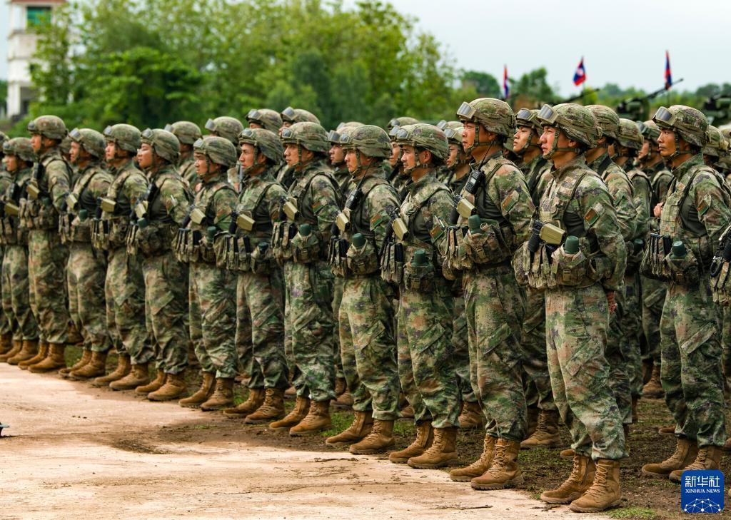 5月26日,中方參演官兵在老撾人民軍庫瑪丹學(xué)院訓練場(chǎng)參加中老“友誼盾牌-2023”聯(lián)演結束儀式。