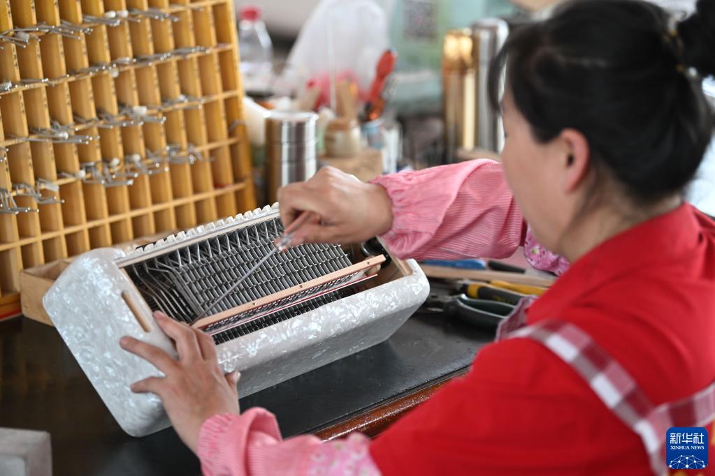 5月25日,在天津鸚鵡樂(lè )器有限公司,工作人員在車(chē)間內裝配手風(fēng)琴。