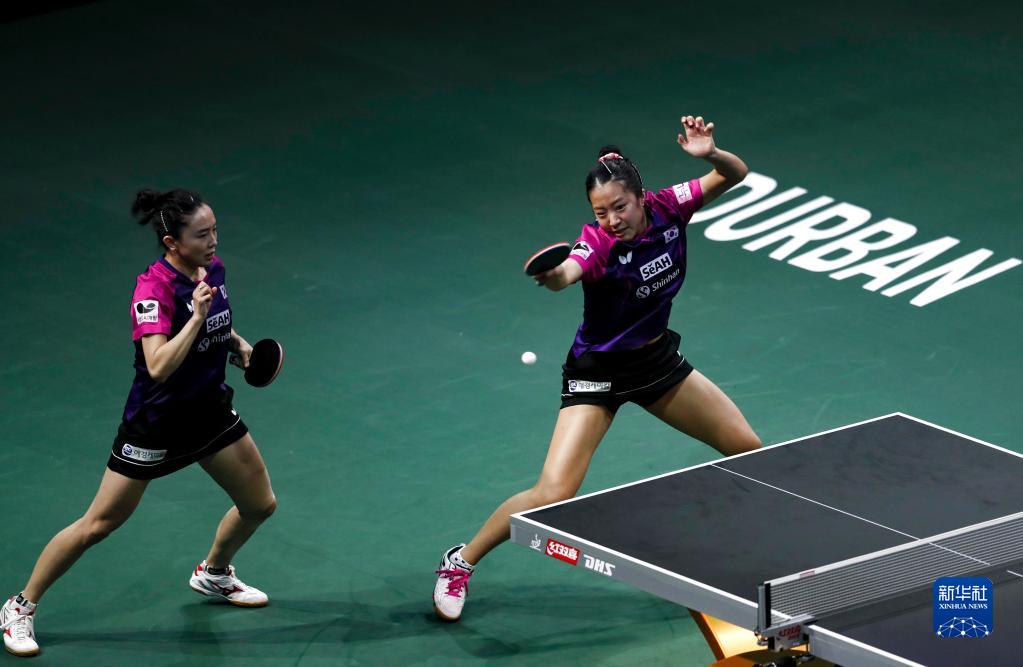當日,在南非德班進(jìn)行的2023年世界乒乓球錦標賽女子雙打決賽中,中國選手陳夢(mèng)/王藝迪以3比0戰勝韓國選手田志希/申裕斌,奪得冠軍。