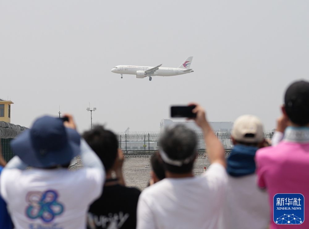 5月28日,C919首個(gè)商業(yè)航班東航MU9191飛抵北京首都國際機場(chǎng)。新華社記者鞠煥宗攝