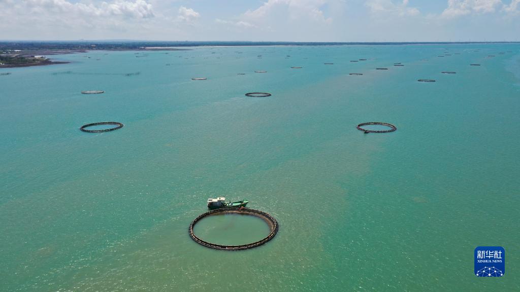 湛江徐聞西連鎮的“海上牧場(chǎng)”(5月27日攝,無(wú)人機照片)。