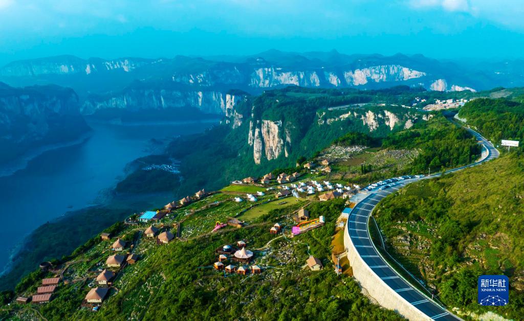5月27日早晨在貴州省黔西市新仁苗族鄉拍攝的化屋露營(yíng)基地(無(wú)人機照片)。
