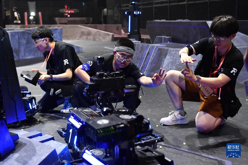 5月28日,大連交通大學(xué)TOE戰隊隊員在比賽間隙調試機器人。