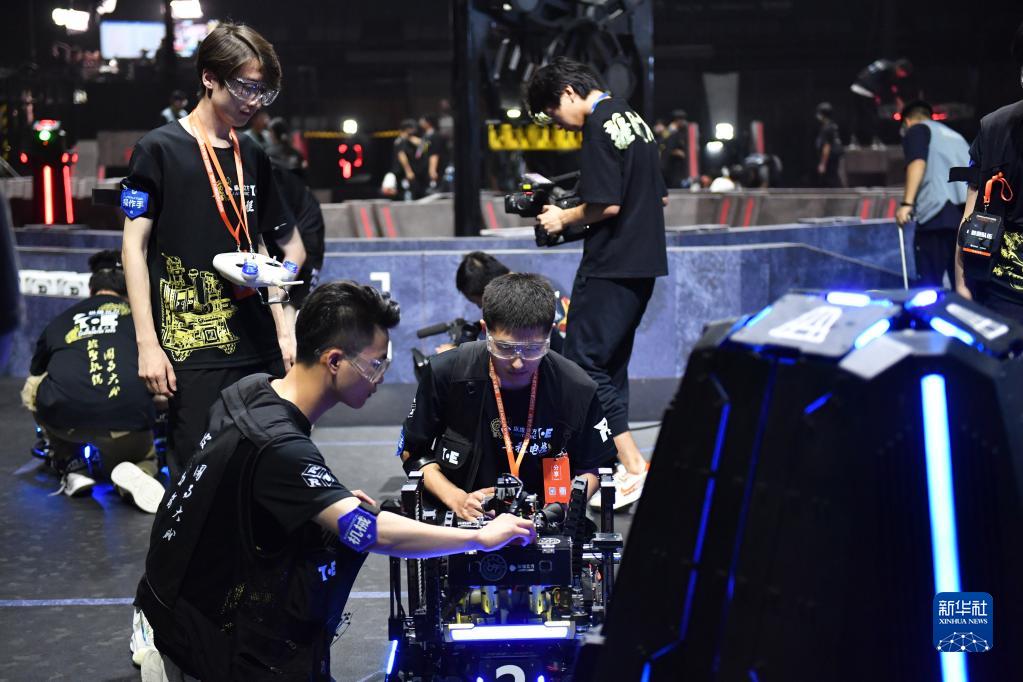5月28日,大連交通大學(xué)TOE戰隊隊員在比賽前調試機器人。
