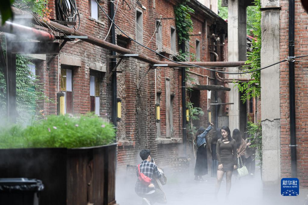 5月28日,游客在鄭州記憶·油化廠(chǎng)創(chuàng )意園內參觀(guān)游玩。