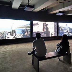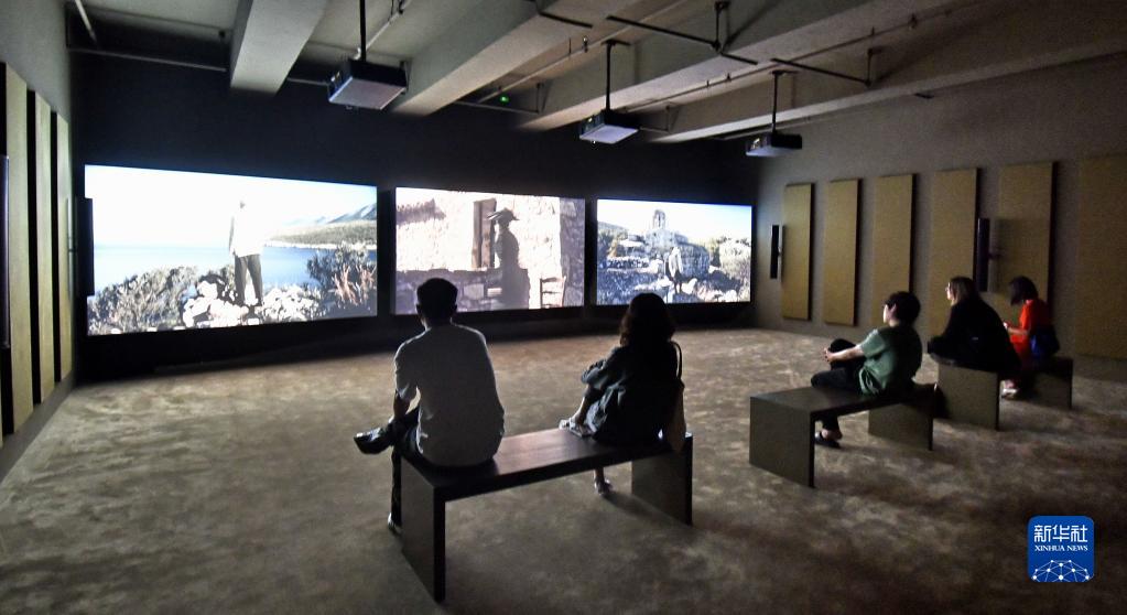 5月28日,市民在國家對外文化貿易基地(北京)的里森畫(huà)廊觀(guān)看展映影像作品。
