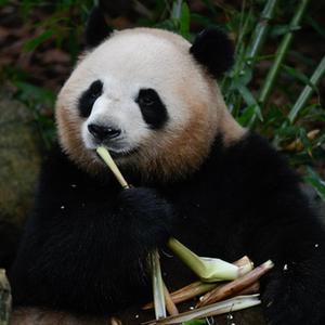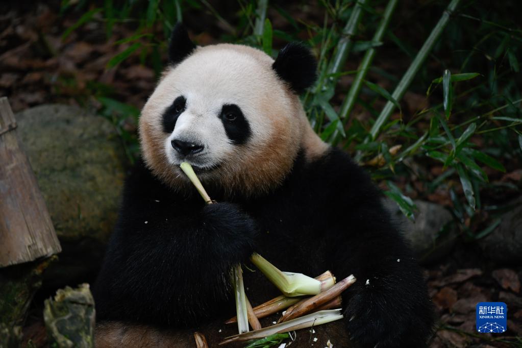 5月29日,在成都大熊貓繁育研究基地都江堰野放繁育研究中心,梅蘭在吃竹筍。
