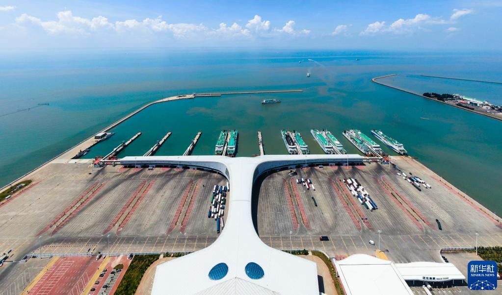 廣東省湛江市徐聞港風(fēng)光(5月26日攝,無(wú)人機照片)。徐聞港是瓊州海峽北岸最主要的客貨運輸港口,是連接粵港澳大灣區與海南自由貿易港的重要港口。