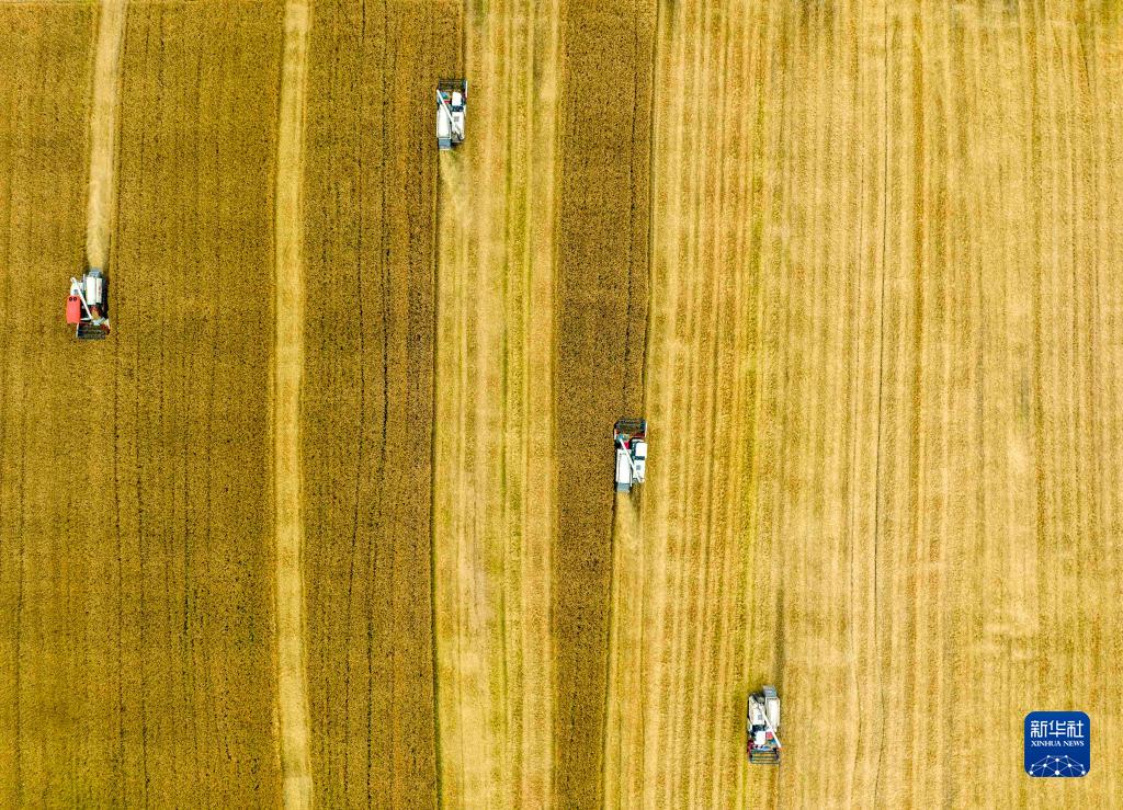 近日,江蘇省泰州市255萬(wàn)畝小麥陸續進(jìn)入收割期,當地農民搶抓晴好天氣加緊收割。農機在田間穿梭,構成了一幅美麗的豐收圖畫(huà)。