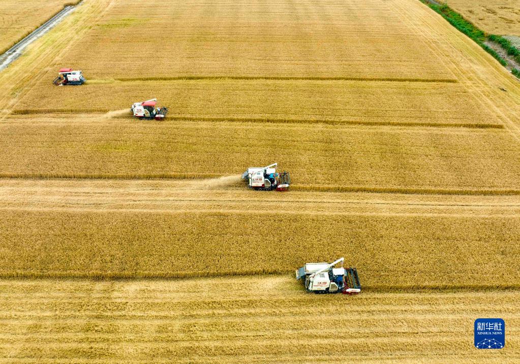 近日,江蘇省泰州市255萬(wàn)畝小麥陸續進(jìn)入收割期,當地農民搶抓晴好天氣加緊收割。農機在田間穿梭,構成了一幅美麗的豐收圖畫(huà)。