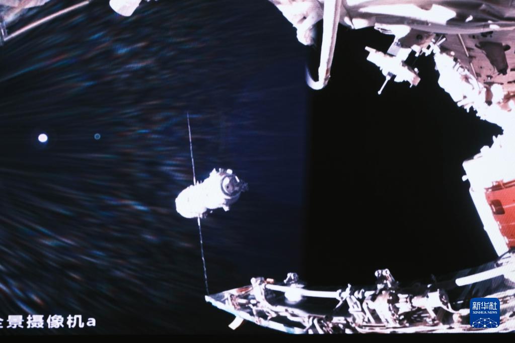 5月30日在北京航天飛行控制中心拍攝的神舟十六號載人飛船與天和核心艙進(jìn)行自主快速交會(huì )對接的畫(huà)面。