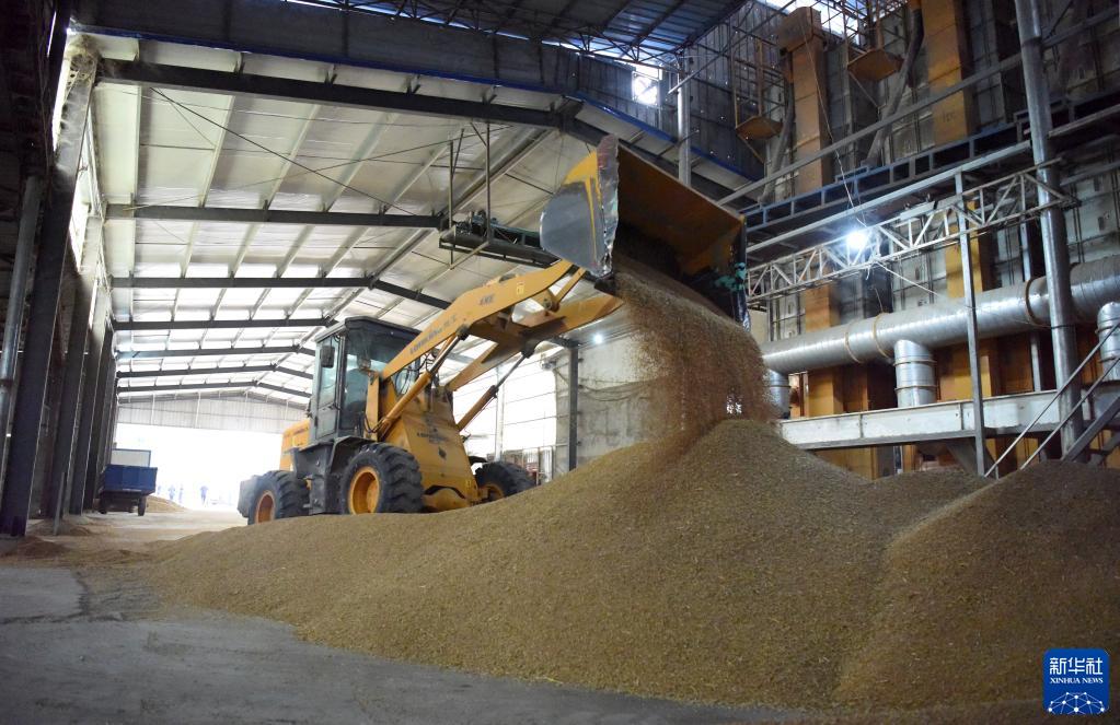 5月30日,在河南省駐馬店市正陽(yáng)縣大林鎮一家烘干加工合作社,工作人員駕駛車(chē)輛將濕麥推入烘干機入料口。