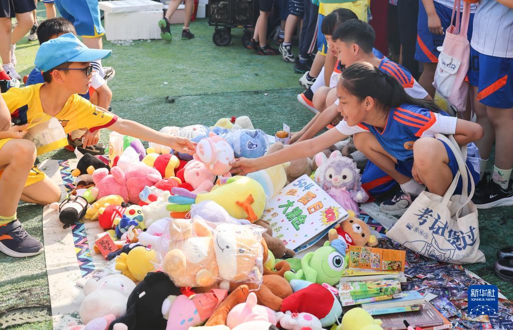 5月31日,在廣西南寧市濱湖路小學(xué),學(xué)生在參與“紅領(lǐng)巾公益市集”義賣(mài)活動(dòng)。