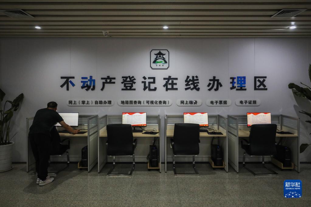 5月30日,在滁州市政務(wù)服務(wù)中心,市民了解不動(dòng)產(chǎn)登記在線(xiàn)辦理流程。