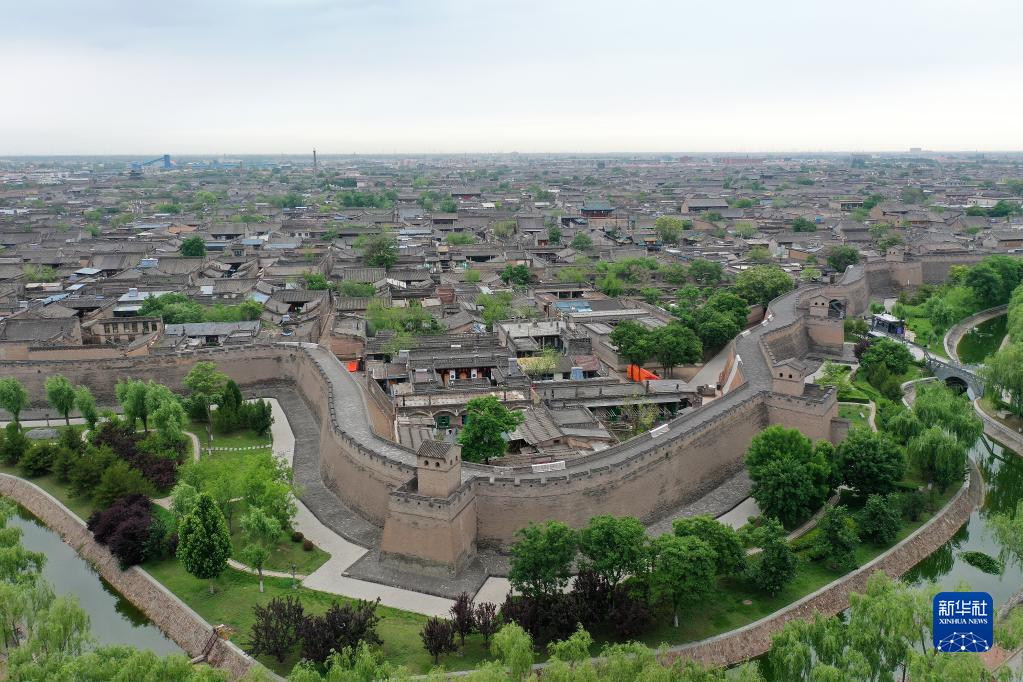 平遙古城一角(5月29日攝,無(wú)人機照片)。
