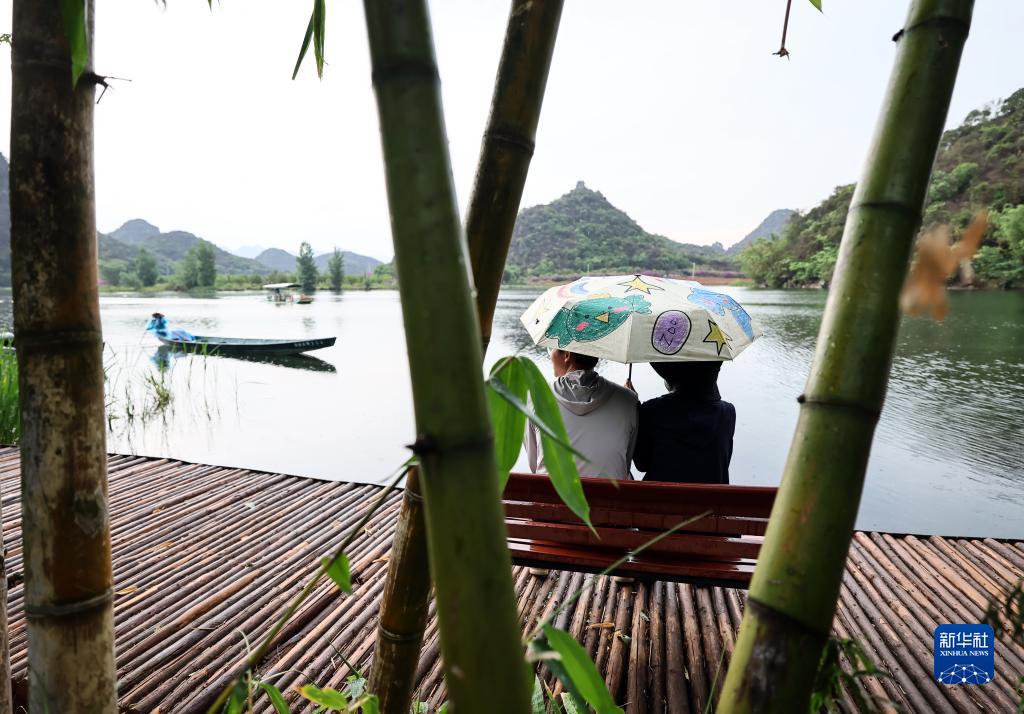 5月30日,游客在普者黑景區仙人洞村欣賞美景。