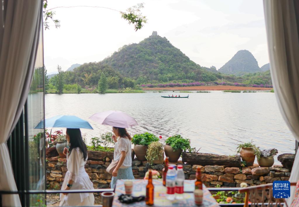 5月30日,游客在普者黑景區仙人洞村游覽。