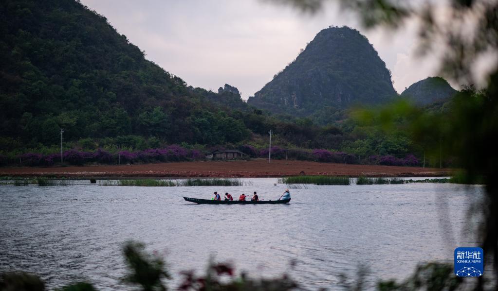5月30日,游客乘船在普者黑景區仙人洞村游覽(無(wú)人機照片)。