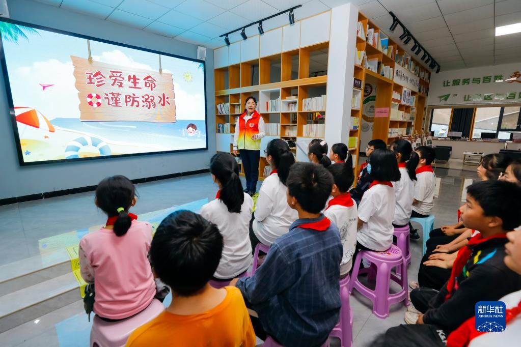 在四川巴中市南江縣集州街道楊家河社區的“童心港灣”,“童伴媽媽”吳莉在為孩子們講解安全知識(5月25日攝)。