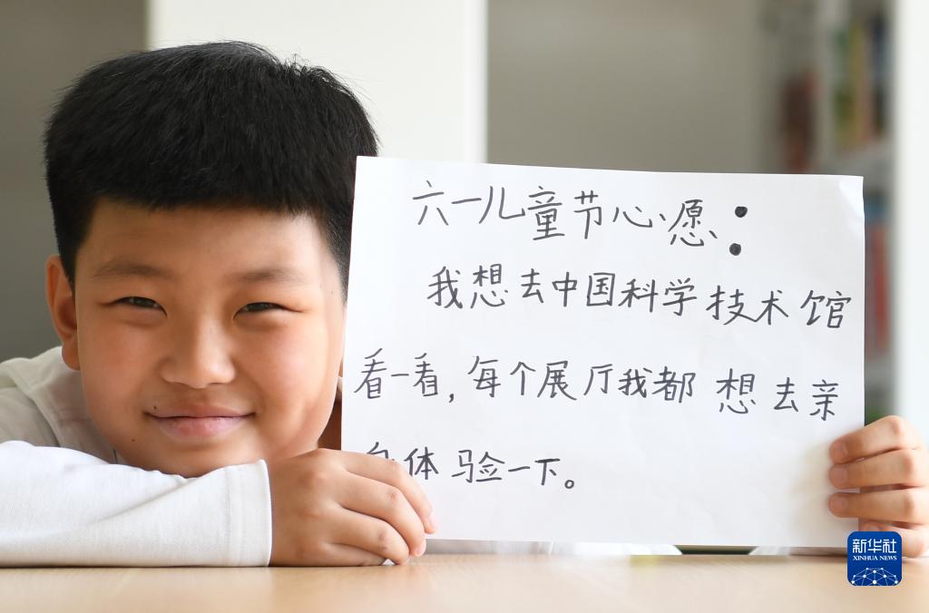 河北雄安新區容東片區容和悅容小學(xué)三年級三班崔祎宸展示“六一”微心愿(5月24日攝)。