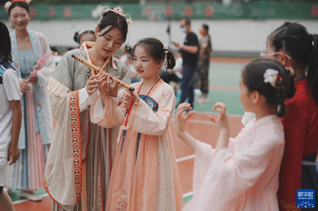5月31日,在石家莊市新華區東風(fēng)小學(xué)師生著(zhù)傳統服飾參加迎“六一”的活動(dòng)。