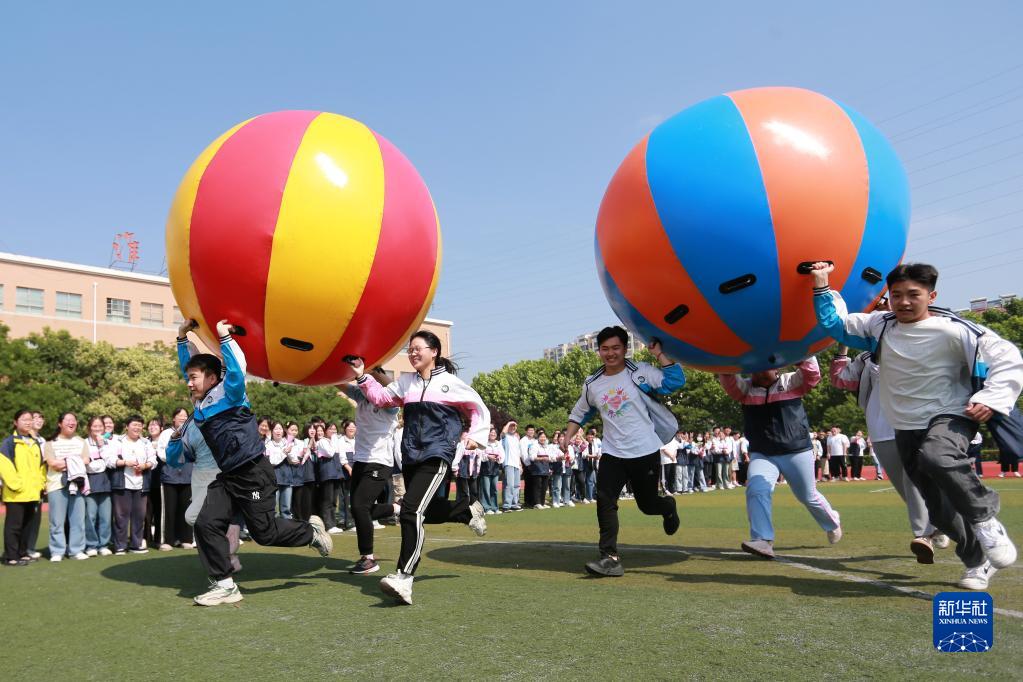 5月31日,在淮北市第十二中學(xué),高三學(xué)生在參加“運轉乾坤”趣味減壓游戲。