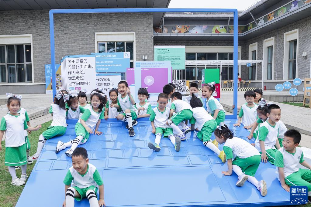 5月31日,小朋友們在活動(dòng)上體驗互動(dòng)藝術(shù)裝置。