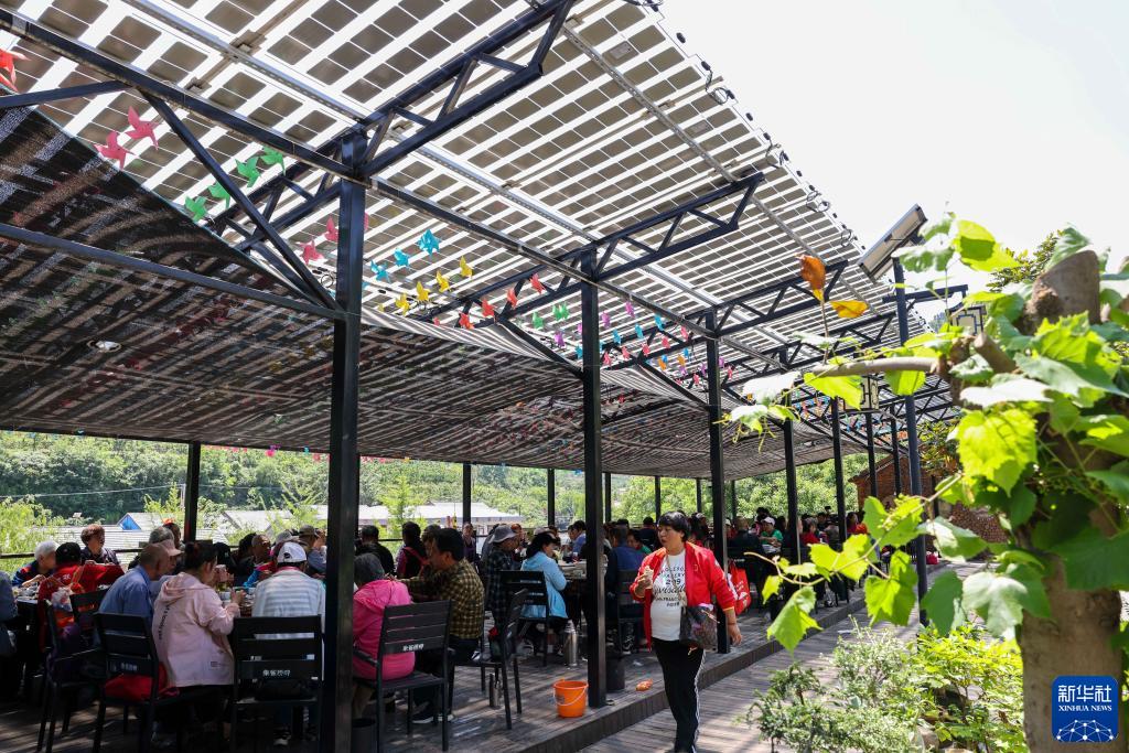 5月31日,游客在燕崖鎮朱家戶(hù)村光伏餐廳就餐,體驗“零碳”鄉村旅游項目。