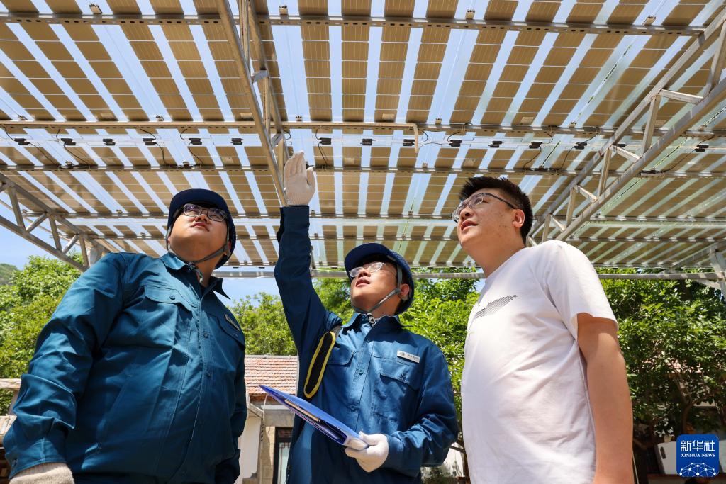 5月31日,沂源縣供電公司技術(shù)人員在燕崖鎮朱家戶(hù)村為使用能源自平衡技術(shù)的民宿檢查光伏發(fā)電板。