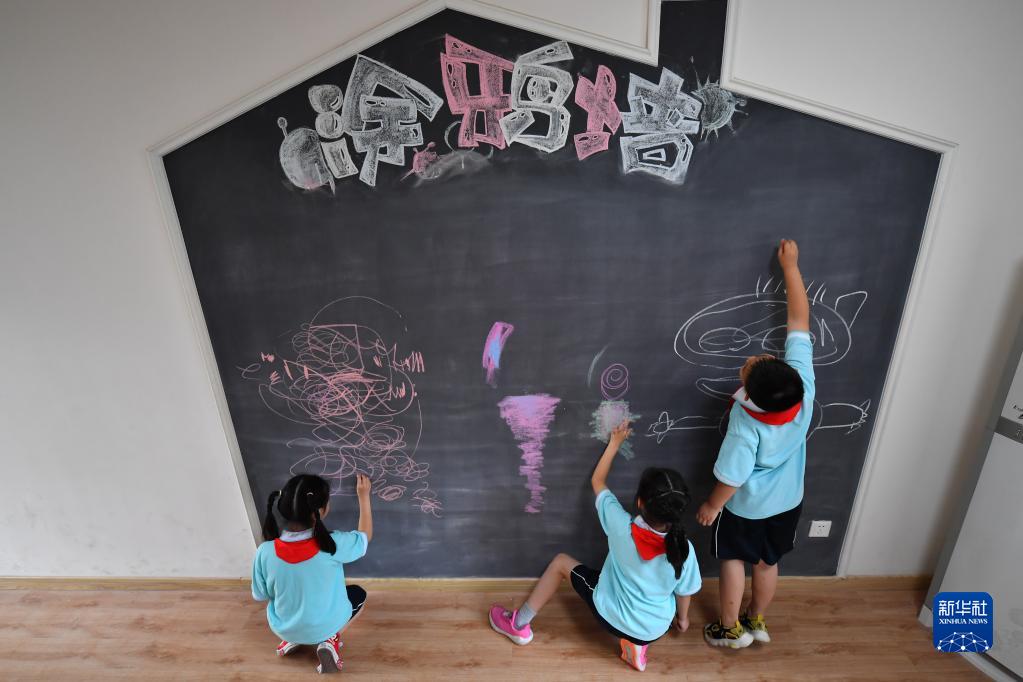 5月31日,在長(cháng)沙市岳麓區實(shí)驗小學(xué)“心語(yǔ)花溪”心理成長(cháng)中心的情緒宣泄室,學(xué)生通過(guò)涂鴉放松心情。