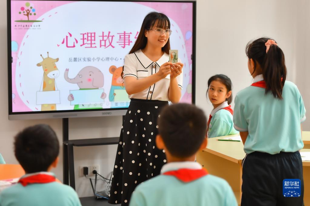 5月31日,在長(cháng)沙市岳麓區實(shí)驗小學(xué)“心語(yǔ)花溪”心理成長(cháng)中心的繪畫(huà)活動(dòng)室,心理健康輔導老師給學(xué)生上“心理故事繪”課程。
