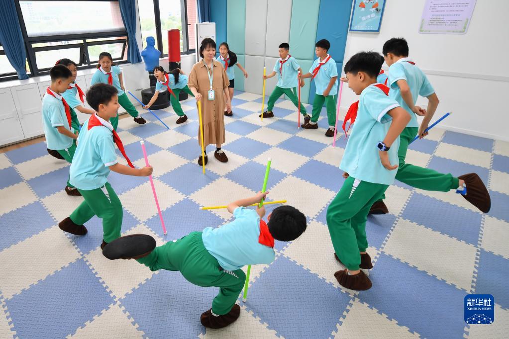 5月31日,在長(cháng)沙市岳麓區實(shí)驗小學(xué)“心語(yǔ)花溪”心理成長(cháng)中心的團體活動(dòng)室,學(xué)生在心理健康輔導老師的帶領(lǐng)下做游戲。