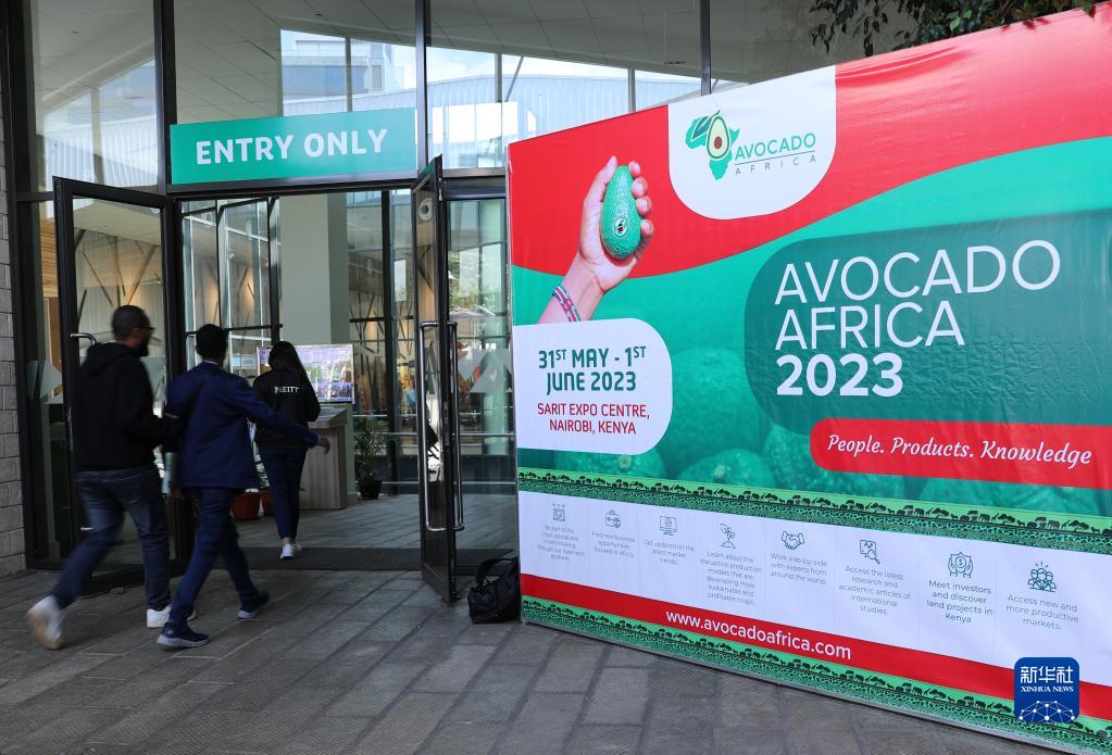 5月31日,在肯尼亞內羅畢,與會(huì )者進(jìn)入第二屆國際非洲牛油果大會(huì )現場(chǎng)。