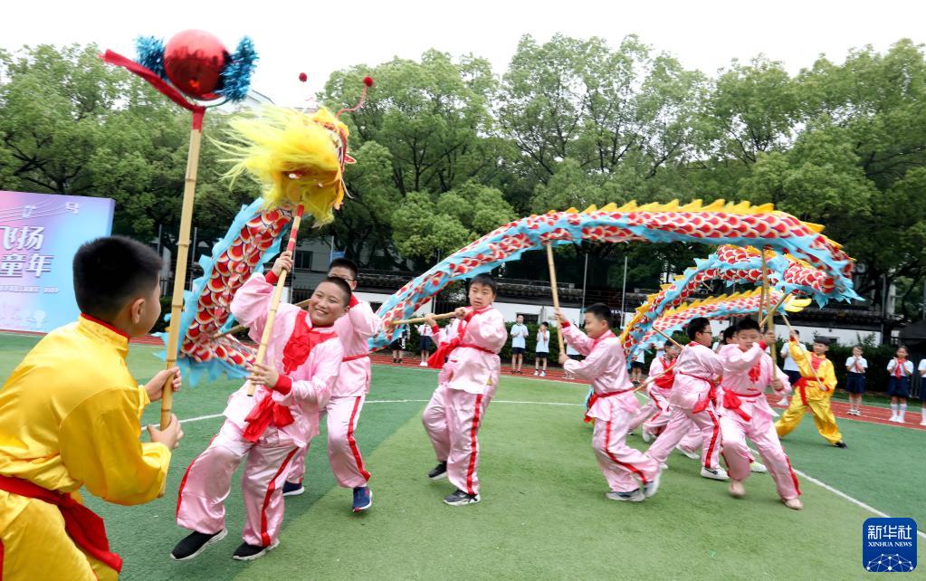 6月1日,江蘇省蘇州市昇平實(shí)驗小學(xué)校學(xué)生在表演舞龍。