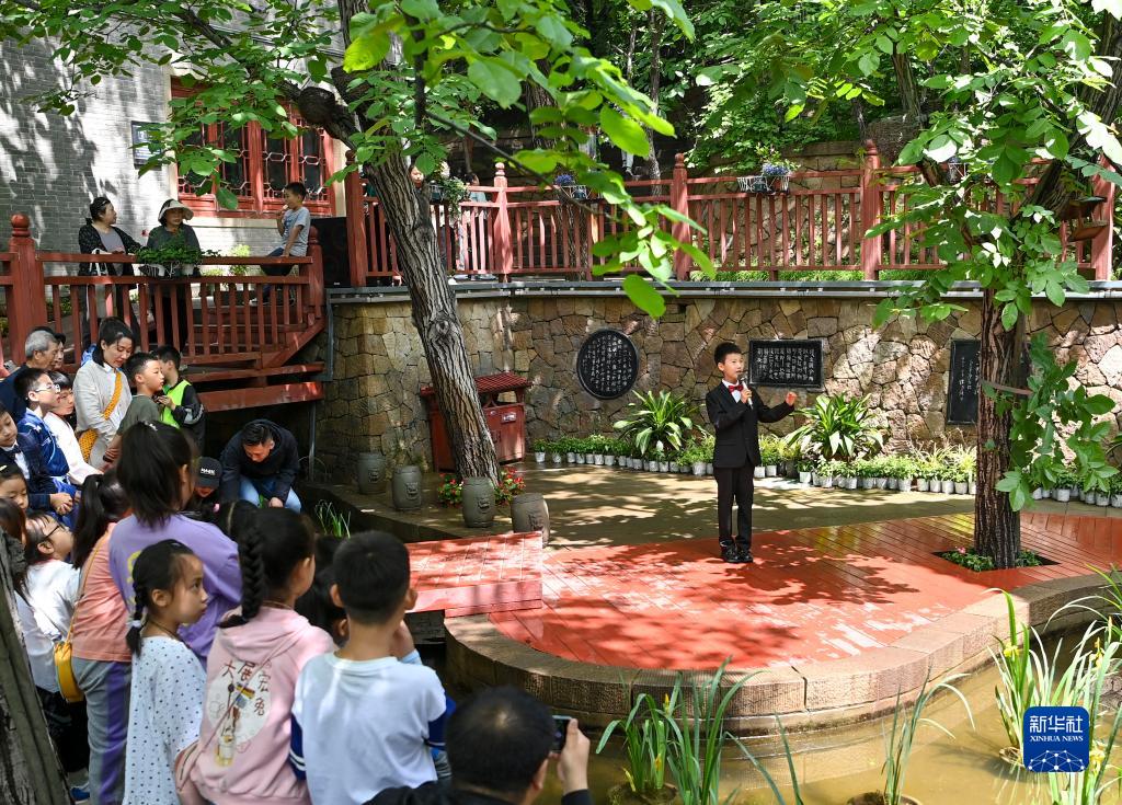 6月1日,小朋友在山西太原太山景區舉辦的兒童書(shū)畫(huà)、詩(shī)詞誦讀活動(dòng)中朗誦。