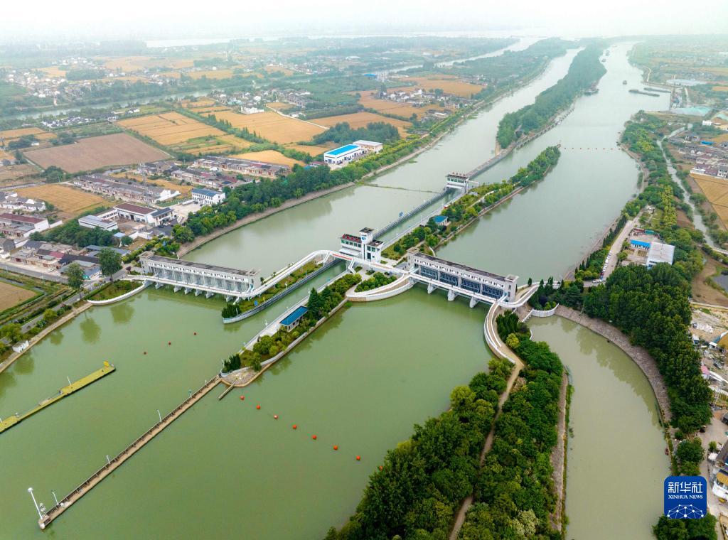 這是6月1日拍攝的位于江蘇省揚州市江都區的南水北調東線(xiàn)一期工程運鹽閘、邵仙套閘、邵仙閘洞(無(wú)人機照片)。