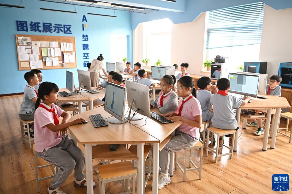 5月31日,中關(guān)村第三小學(xué)雄安校區3D打印社團的同學(xué)們在軟件上設計火箭模型。
