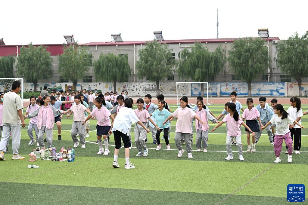 5月31日,中關(guān)村第三小學(xué)雄安校區的學(xué)生在操場(chǎng)上體育課。