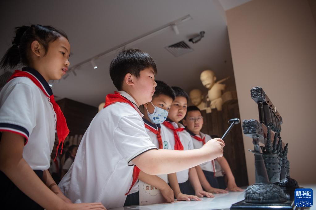 6月1日,小朋友們在館內參觀(guān)體驗。