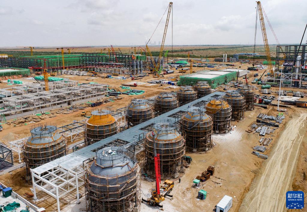 6月1日拍攝的鄂托克前旗光伏裝備制造全產(chǎn)業(yè)鏈科技示范項目施工現場(chǎng)(無(wú)人機照片)。