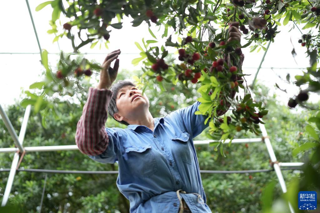 6月1日,在余姚市三七市鎮石步村,果農在大棚內采摘成熟的楊梅。
