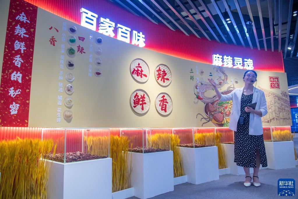 5月30日,在位于重慶市大渡口區的重慶小面產(chǎn)業(yè)園,工作人員在介紹重慶小面的特點(diǎn)。