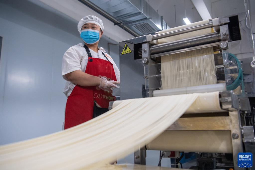 6月1日,在位于重慶市大渡口區的井谷元食品科技有限公司生產(chǎn)車(chē)間內,工人在小面生產(chǎn)線(xiàn)上工作。