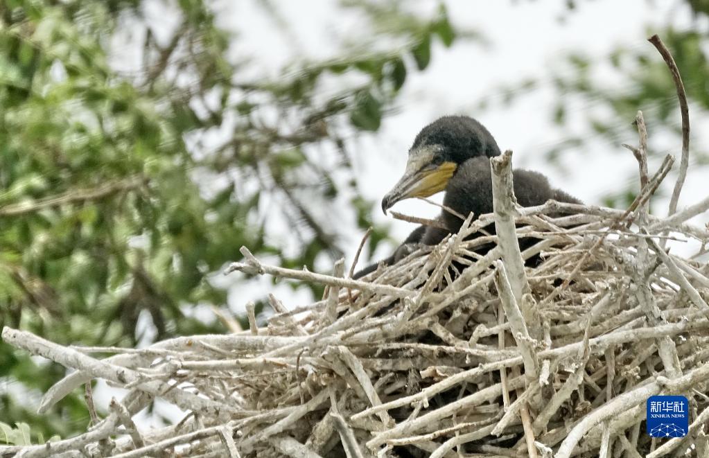 密云水庫“鳥(niǎo)島”上一只鸕鶿幼鳥(niǎo)在窩中休息(5月31日攝)。